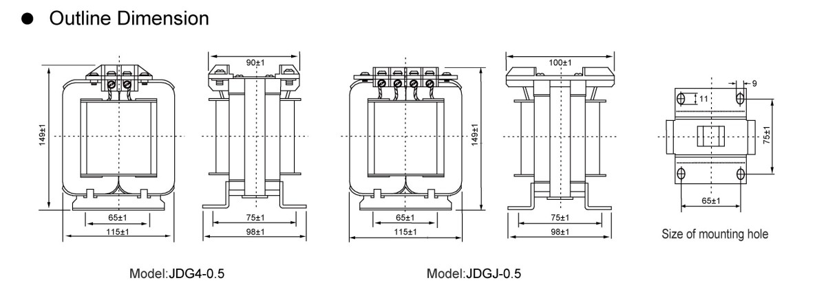 JDG4-0.5 इनडोअर लो व्होल्टेज ट्रान्सफॉर्मर इंस्टॉलेशनचे परिमाण