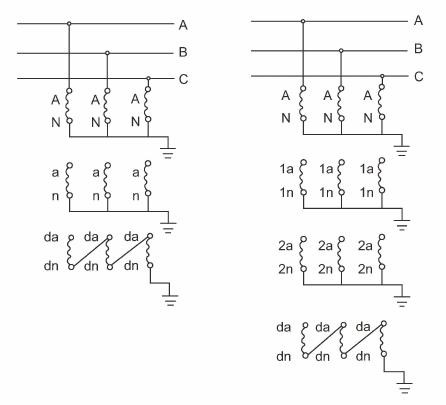 X - अवशिष्ट व्होल्टेज विंडिंगसह (ग्राउंडिंग संरक्षणासाठी)