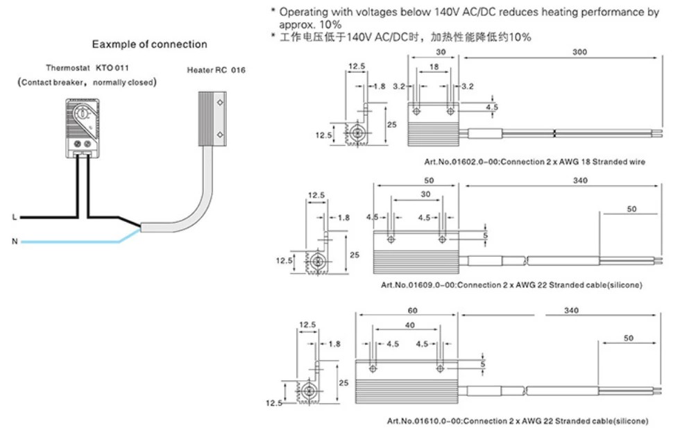 हीटर प्रगत पीटीसी सेमीकंडक्टर तंत्रज्ञान वापरते. हे इलेक्ट्रिकल कॅबिनेटसाठी सतत तापमान नियंत्रण प्रदान करते. त्याची मुख्य कार्ये खालीलप्रमाणे आहेत: